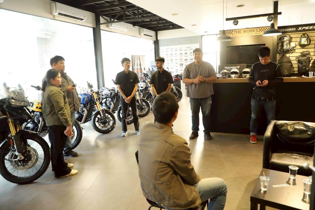 ในช่วงเช้า ผู้ร่วมกิจกรรมได้รวมพลกันที่ Triumph Bangkok Ram เพื่อรับฟังการชี้แจงกำหนดการ แนะนำเส้นทาง รวมถึงสัญญาณมือสำหรับการขี่เป็นกลุ่ม ก่อนออกเดินทาง เพื่อความปลอดภัยตลอดทริป